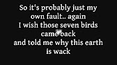 Afraid Of The Dark. I wish does seven birds came back and told me why the earth deserve is wack Cause it aint sync what we deserve and get. Thanks to EZ for correcting these lyrics.