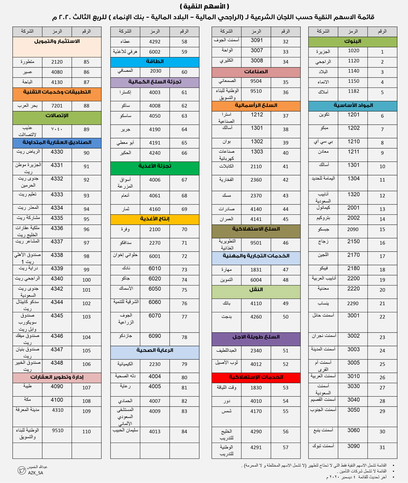 Abdullah Al Khmais On Twitter الأسهم النقية في السعودية هناك 5 لجان شرعية تصنف اسهم الشركات اخترنا 3 جهات لأنها تحدث قوائمها باستمرار وقد اتفقت على هذه القائمة اللجان الشرعية لـ